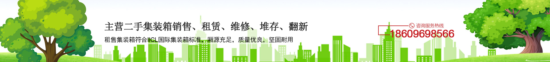 主營二手集裝箱銷售、租賃、維修、堆存、翻新。ISO罐箱,開頂箱,框架箱冷藏集裝箱加寬加高,集裝箱活動房改裝,飛翼集裝箱改裝,特種集裝箱定制與改裝,以及運輸等業務,所有租售集裝箱符合IICL國際集裝箱標準,廂源充足,質量優良,堅固耐用。20GP 40GP 40HQ 45HQ規格齊全。